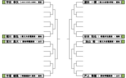 ジュニア男子は宇田君がついに優勝か トーナメント 優勝候補の筆頭:宇田幸矢(JOC) 対抗馬:戸上(野田学園、Tリーグ埼玉) プレースタイルに注目:手塚崚馬(明徳義塾高校) 台風の目となれるか:松島輝空(小5) ジュニア男子は宇田君がついに優勝か 去年のジュ…